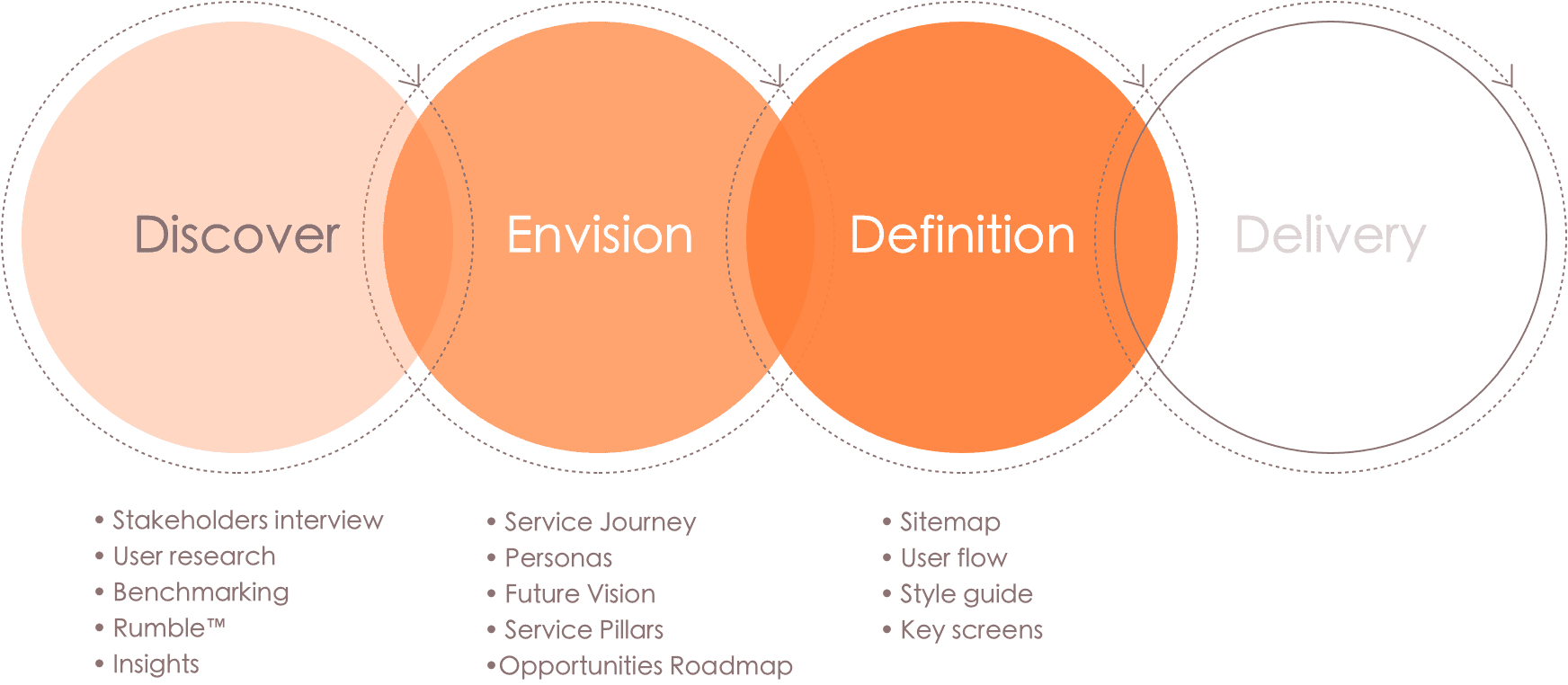 Our process was structured into four key pillars: Discovery, Envision, Definition, and Delivery.