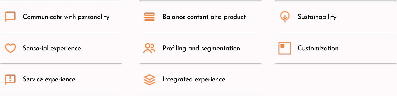 The Result: Eight main insights that became our North Star, including the need for sensorial experiences, integrated journeys, and sustainability.